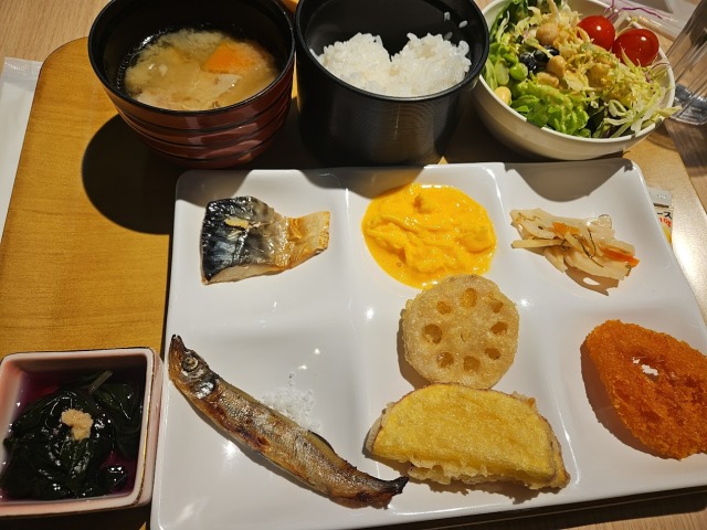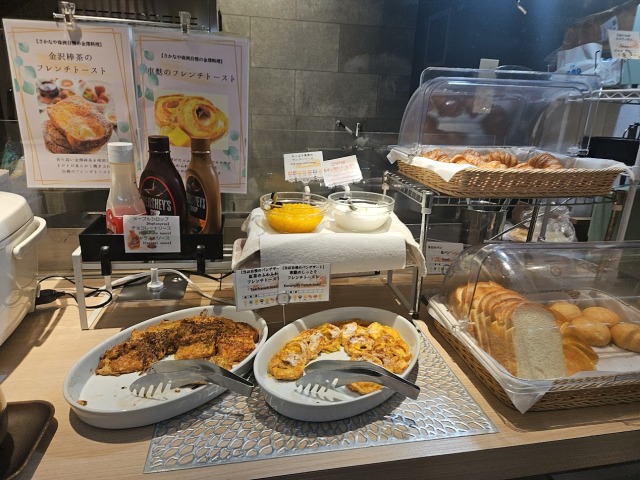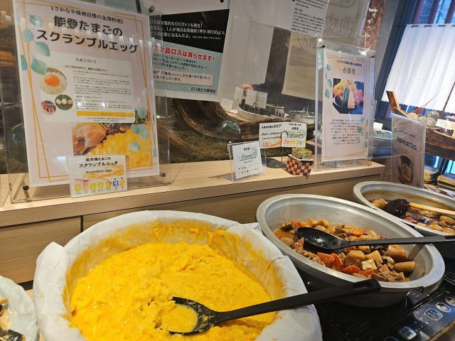治部煮、金沢おでんなど郷土料理のほか、能登たまごを使用したスクランブルエッグなど、地元の食材を使用した地産地消メニューも豊富にそろっていました。