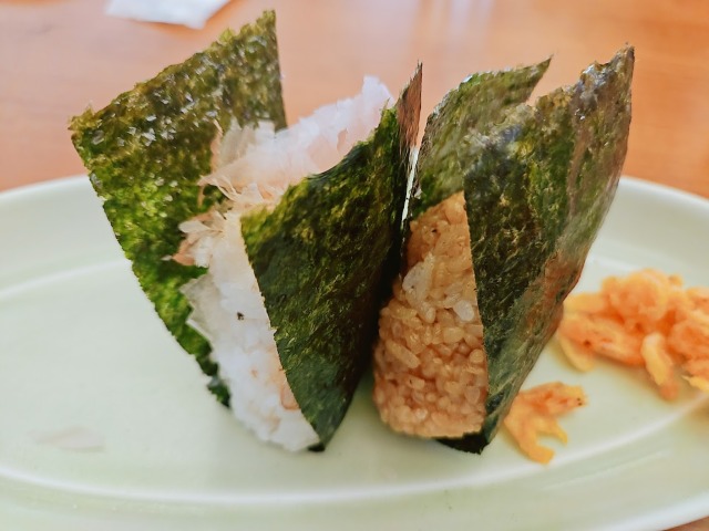 こちらはその場で握ってもらえるおにぎり👇お代わり自由ですが、1回の注文は2個までです。