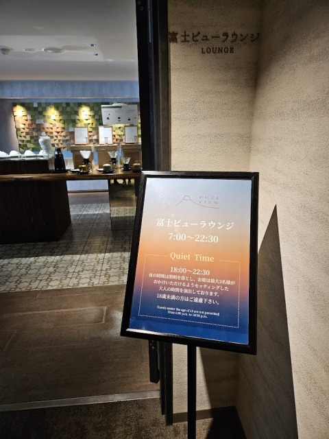食後、アクティビティの予約までまだ少し時間があったので、まだ行けていなかった4階にある富士ビューラウンジへ。