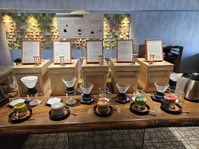 朝の時間帯は地元のコーヒーショップが焙煎した豆を使用したハンドドリップ体験ができます。