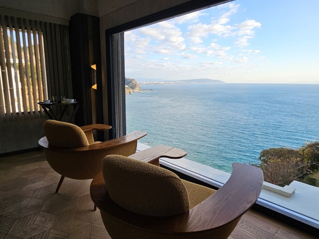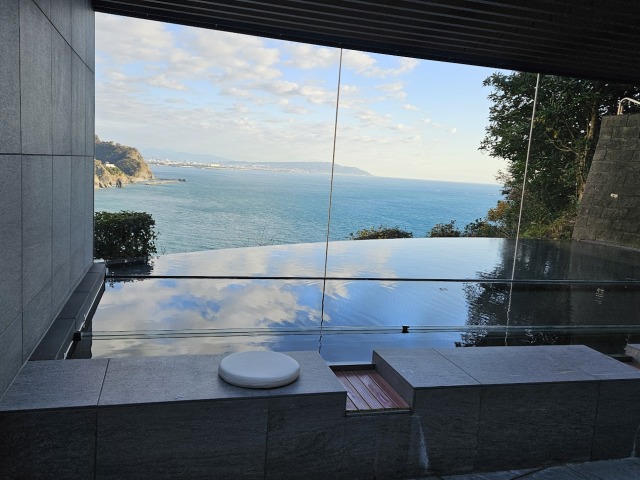 こちらは富士山、駿河湾、大崩海岸を一望できる足湯。