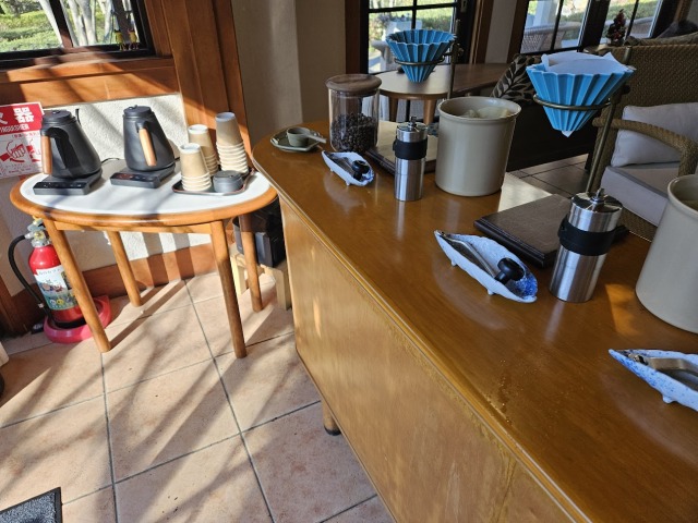 9時半にモルックを終えて、ハンドドリップ体験のコーヒーでくつろいだら、急いで部屋へ戻ってチェックアウト。