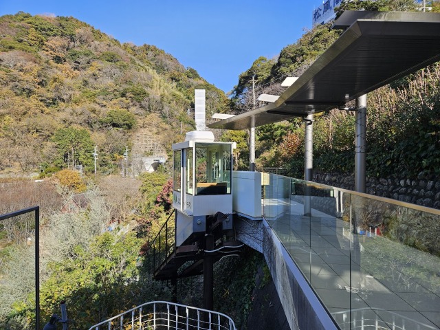 やいづの森へは階段のほか、こちらのスロープーカーで移動することもできますよ。